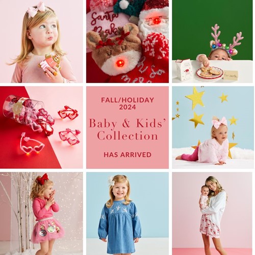 Our Baby & Kids' 2024 Holiday Collection offers sweet, playful, and inspirational gifts and apparel that inspire creativity, encourage memory-making, and foster family traditions. These thoughtful, giftable pieces are ideal for everyday play and capturing milestone moments.
